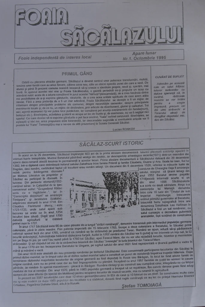 În cei peste 10 ani de activitate, Asociația Armonia a organizat o serie de evenimente culturale care valorifică istoria locală: Zilele Săcălazului, sărbătoare inițiată de Ghiță Blejușcă și Ștefan Tomoiagă; Festivalul Răchiei, a cărui primă ediție a avut loc în 2010; înființarea grupului vocal bărbătesc „Armonia”, care a participat alături de corul feminin „Săcălăzeana” la Festivalul de Colinde de la Săcălaz; Simpozionul Publiciștilor Presei Rurale din Banatul Istoric (2010); „Armonia la aniversarea a 250 de ani de la sosirea săcălăzenilor în 1767, la Torac, Serbia” (9 septembrie 2017); „În veci de veci Fi lăudat” la Biserica Ortodoxă din Torac, Serbia (decembrie 2016); Festivalul Vinului și al Plăcintelor (2019), și multe altele.